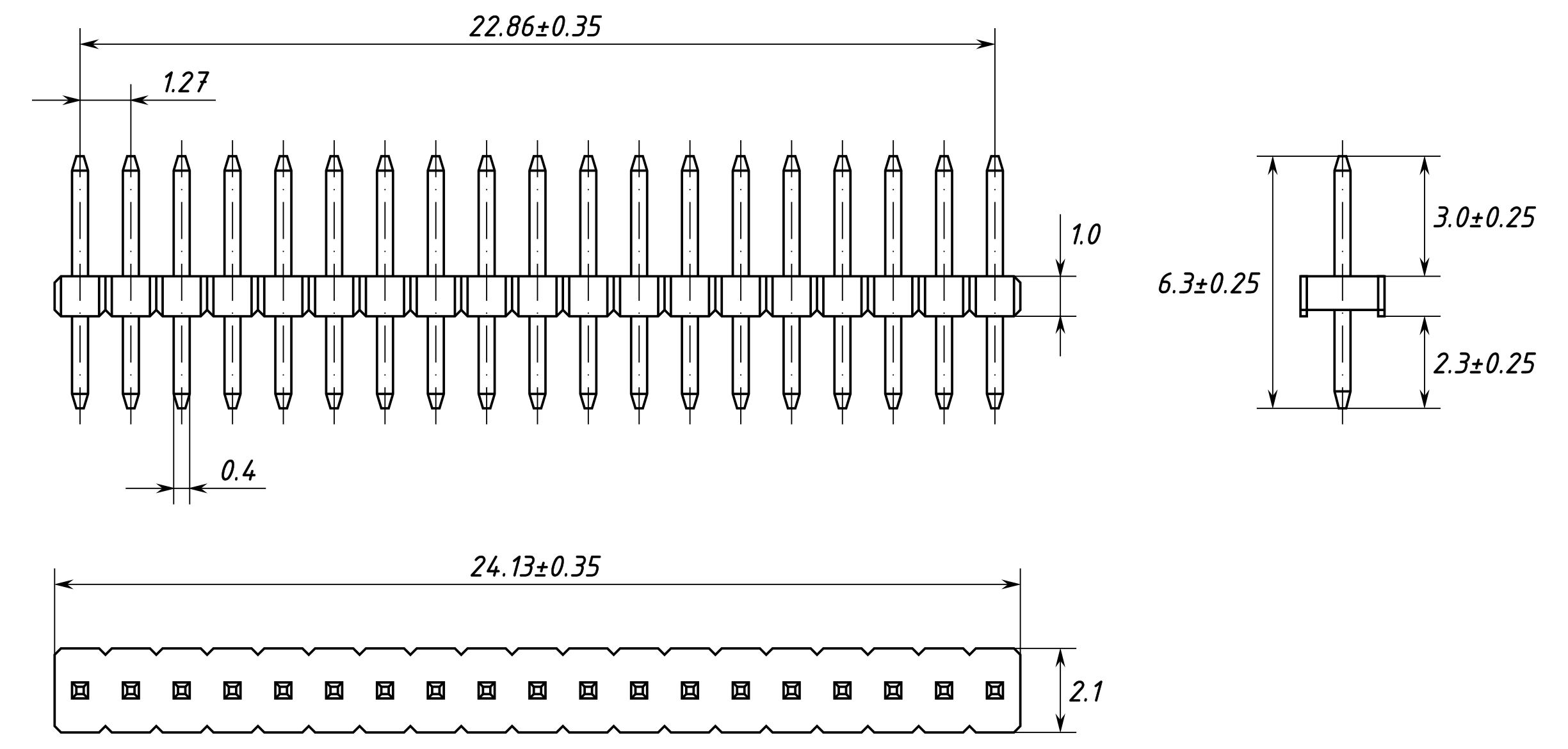 Single row 19-pin pin header, 1.27 mm pitch